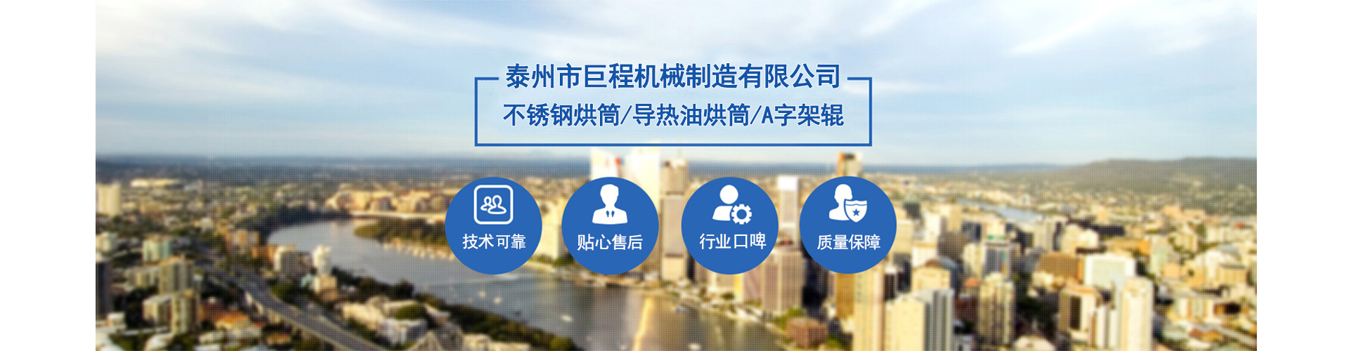 泰州市巨程機(jī)械制造有限公司 泰州市巨程機(jī)械制造有限公司泰州市巨程機(jī)械制造有限公司是一個(gè)專業(yè)生產(chǎn)不銹鋼烘筒、導(dǎo)熱油烘筒、雙層冷水輥、A字架輥、染整設(shè)備等產(chǎn)品的機(jī)械公司。我公司注重產(chǎn)品質(zhì)量,講求企業(yè)信譽(yù)。我公司重點(diǎn)在于內(nèi)部管理,努力提高產(chǎn)品質(zhì)量,強(qiáng)化全體員工的服務(wù)意識(shí),形成了一套我廠的用戶定期回訪制度,積極搜集廣大用戶在使用我廠設(shè)備過(guò)程中反饋回的各種信息,有針對(duì)性的組織人員進(jìn)行專項(xiàng)攻關(guān)